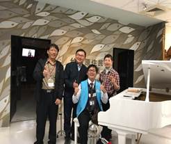 經由劉櫂豪立委在國外機場聽到鋼琴演奏感動經驗的分享,給了我們航站鋼琴彈奏的發想,並積極爭取經費購置了一台白色鋼琴供民眾即興彈奏。本站於107年購入一部白色鋼琴,供民眾即興彈奏,幸運地更召幕到音樂志工。曾發生重大車禍的他,懷著感恩心,希望能藉琴聲傳播歡樂,並分享自已的生命故事激勵人心。